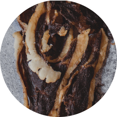 We’ve perfected our drying process, leading to flaky, delicious snacks (think “meat pastry”) that melt in your mouth. Plus, before we dry our brisket chips, chicken chips, and pork chips, there’s a whole pound of meat in every bag!